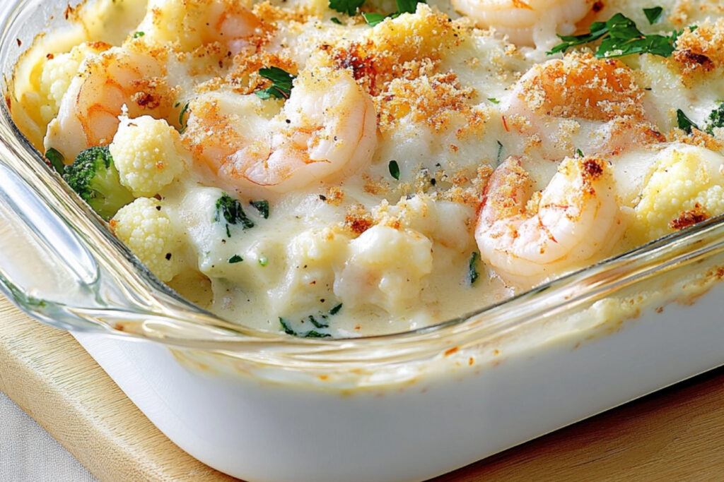 Introducción El gratinado de camarones y coliflor es un platillo exquisito que combina sabores del mar con la suavidad de