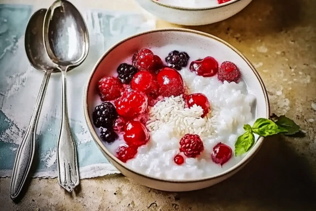 Introducción El arroz con leche de coco y frutas rojas es un postre delicioso y exótico que combina la cremosidad