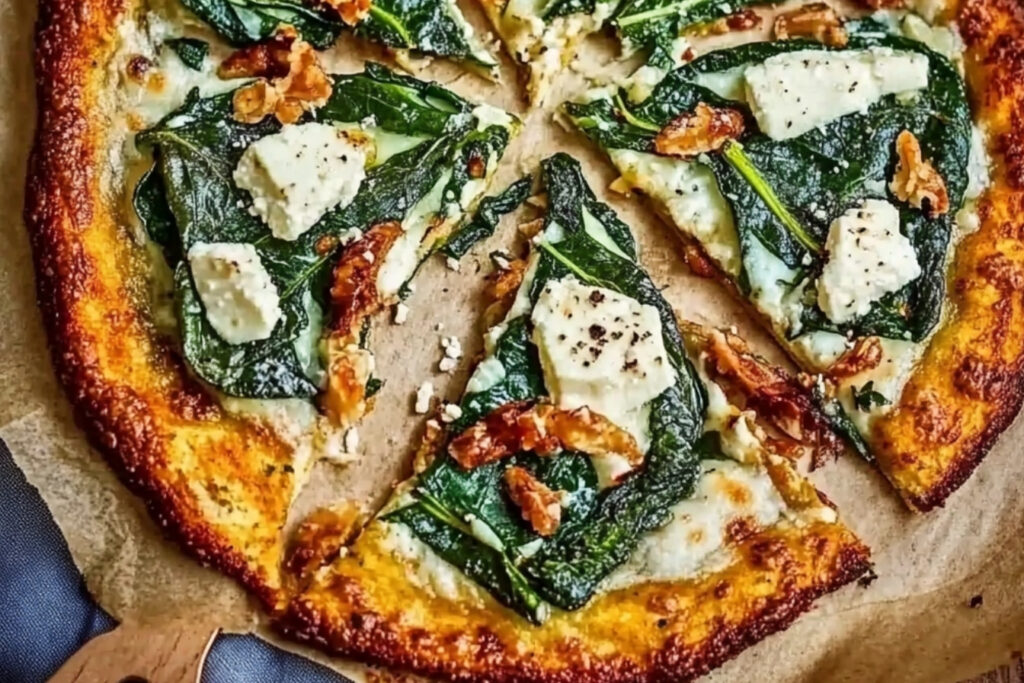 Introducción La pizza crujiente con hojas de col, queso fresco y ajo es una deliciosa alternativa a la clásica pizza.